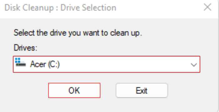 Step 2: Select C drive > OK.