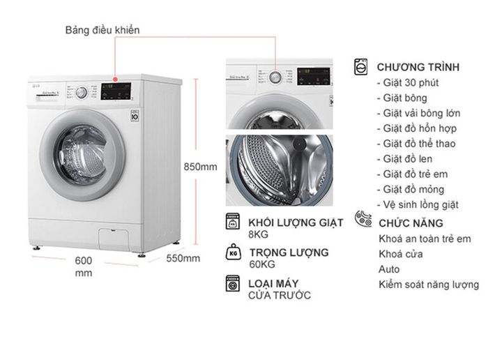 - This is also a great budget-friendly washing machine option. Spend around 7.5 million VND to get the horizontal drum version, integrated with outstanding Inverter technology. This LG model is also one of the best-sellers. The LG Inverter 8kg washing machine is suitable for households with 3-5 people. It solves the headache of electricity consumption. This product runs smoothly.