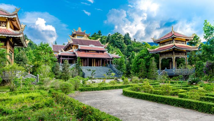 Amidst the lake stands the Linh Sơn mountain, shrouded in mist throughout the year. The Trúc Lâm Bạch Mã Zen Monastery, solemn and grand, is one of the largest monasteries in the country. Exploring the monastery, visitors discover winding paths, main halls, meditation rooms, all harmoniously designed with nature, creating a feeling of being in a celestial realm, detached from the outside world.