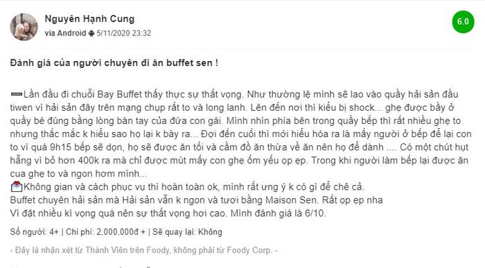 So, what do customers say when they come here? Here are some comments to give you the most authentic insight into Bay Buffet: