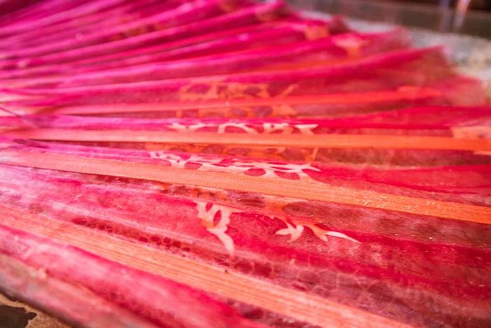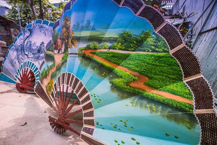 Uncle Đoàn is a shining example of creativity and learning. Most of his products are now exported to sophisticated cultural destinations such as France, Japan, and the United States. Additionally, there are fans that... aren't exactly fans, used in spiritual ceremonies, traditional festivals, or even crafted into wedding invitations. The unique Vietnamese fan shape is also present in many upscale restaurants, featuring menus displayed on the fans.