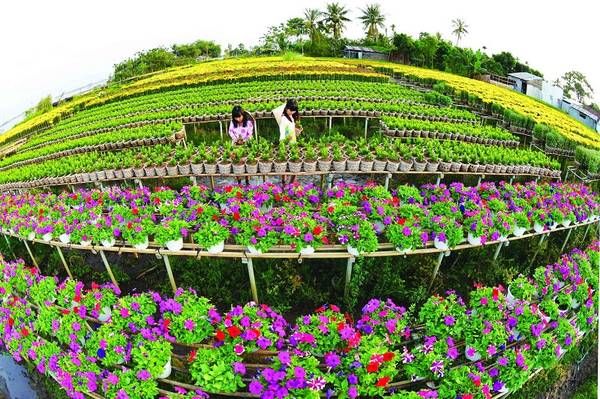 Sa Dec Flower Village: One of the renowned flower villages in the Southwest, Sa Dec Flower Village (Tan Quy Dong commune, Sa Dec City) is the main supplier of flowers to neighboring areas during Tet. It's also a favorite destination for tourists every Tet holiday. The predominant flower species in Sa Dec include chrysanthemums, marigolds, cosmos, sunflowers, peach blossoms, roses, ornamental peppers, and more. Especially this year, Sa Dec City is even organizing a week-long festival from January 7th to 14th, 2017, named 'The Four Seasons Showcase,' featuring numerous attractive activities for tourists.