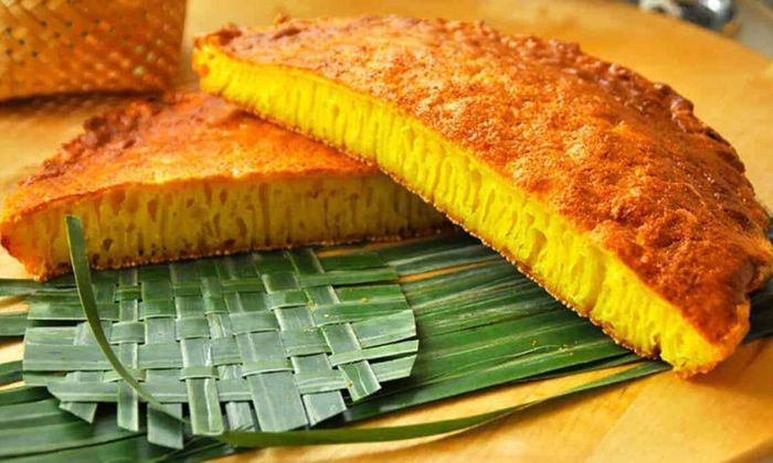 Sweet Potato Cake blends a mixture of flour with finely crushed sweet potatoes. The distinctive sweet and earthy taste of sweet potatoes blends with coconut milk, making this cake more delicious than ever.