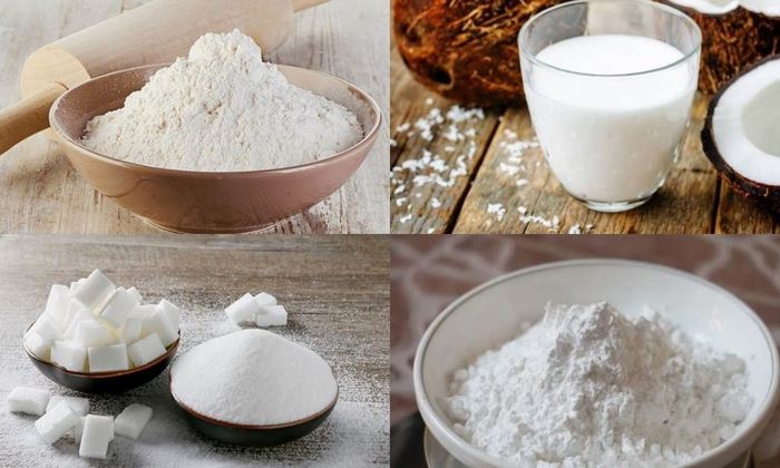 - Fermentation 2: While waiting for the dough to rise, heat 45ml of coconut milk with 350g of sugar, simmer until the sugar completely dissolves into the coconut milk, then turn off the heat. After 30 minutes of fermenting the dough, take it out and pour the cooked coconut milk mixture into it, stir well to combine. Place the dough bowl in warm water (about 50 degrees Celsius), wrap it with a cloth and plastic wrap. Continue fermenting for another 30 minutes.
