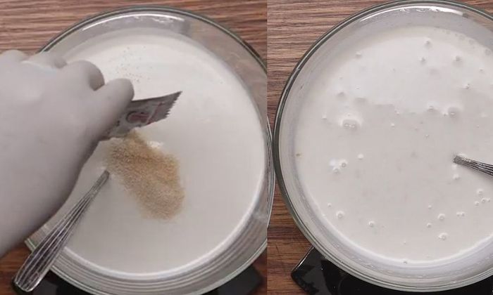 Mix the dry yeast from the flour packet with coconut milk (Source: Internet)Step 2: Ferment the Dough