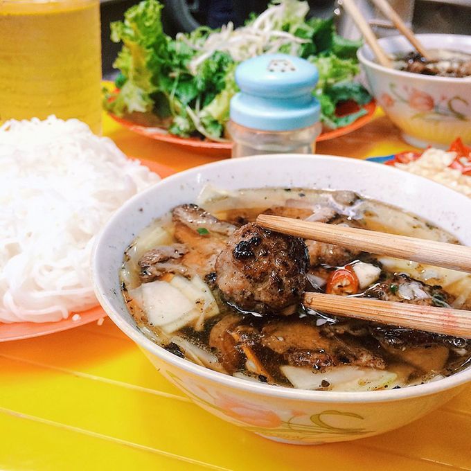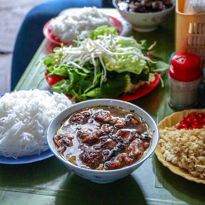 Bun Cha served in a small alley on Hang Quat Street only from around 10 a.m. and closes after 4 hours.