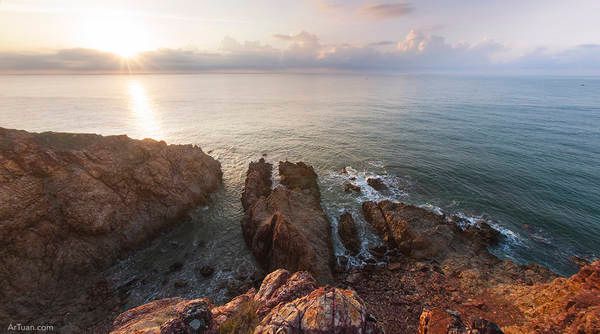 On a clear moonlit night, with the tranquil sea, nothing is more wonderful than casting a line from the rocky promontories, catching and grilling fish right on the spot. If you're lucky, you might catch cowfish, a type of fish that only lives in coral reefs. After removing the charred outer layer, savor the firm and flavorful fish meat. Early the next morning, it's delightful to sit in the tent, peel back the flap, and bask in the first rays of sunlight. In the distance, the sun slowly rises above the sea, casting a layer of glorious golden light over Yen Cape.