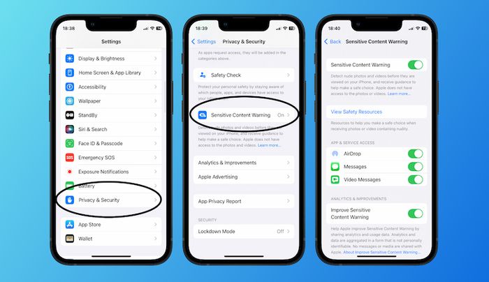 The sensitive content alert feature helps users set limits to avoid encountering awkward situations, such as receiving nude photos, graphic images, etc. In essence, this feature is quite similar to the content restriction feature for children. However, this feature is released for users of all ages to install on their devices.
