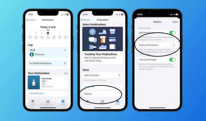 To utilize this feature on iOS 17 dev beta 2, follow these steps: Access the Health app => Select Medications => Scroll down and choose Options => Enable Follow Up Reminders => Press Done to save.
