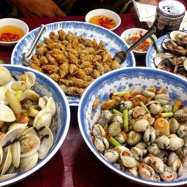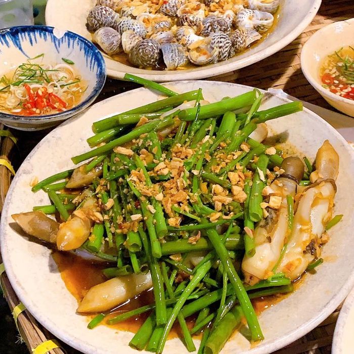 The menu at Little Snail Restaurant is quite diverse with cooking methods that carry the unique flavors of the restaurant, surely will keep travelers enamored forever. Seafood is enjoyed at an extremely affordable price, even cheaper than homemade cooking. You can find snails like conches, whelks, babylonia areolata, cerithidea obtusa, melo melo, strombus turturella, cyclophorus, and many other types of seafood with various cooking styles from steaming, grilling, to sautéing in different sauces for you to freely choose at a fairly reasonable price. The place is very suitable for gathering with friends and 'drinking to the bottom.'