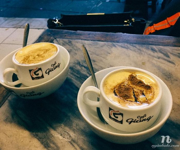 Enjoying a cup of egg coffee at Giang Cafe, you will feel the delicate harmony of coffee, egg yolks, and creamy richness, creating a layer of sweet, rich foam. All of these create a strong flavor, perfect for enjoying on cold days or simply on days when Hanoi is immersed in summer rain.
