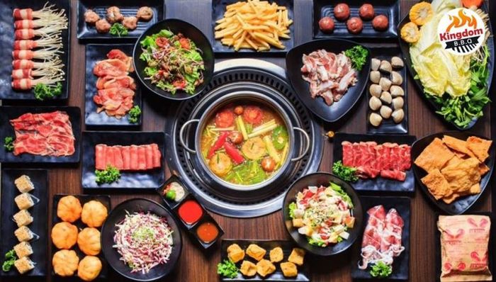 Kingdom BBQ: The secret lies in the marination sauce made from entirely natural ingredients, following the restaurant's traditional recipe. Steamboat: Enjoying the steamboat, the natural sweetness of vegetables is preserved, the chicken is tender and sweet, and the American beef is rich and flavorful thanks to a special steaming pot. Smokeless grilling: You'll relish over 70 delicious grilled and hotpot dishes featuring American beef, pork, chicken, Australian beef, along with a variety of fresh and tasty seafood such as shrimp, clams, octopus, squid,...