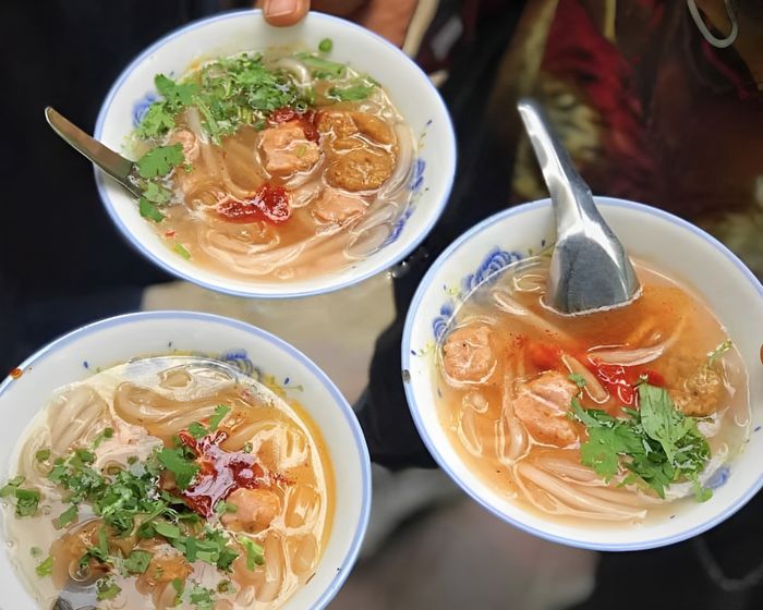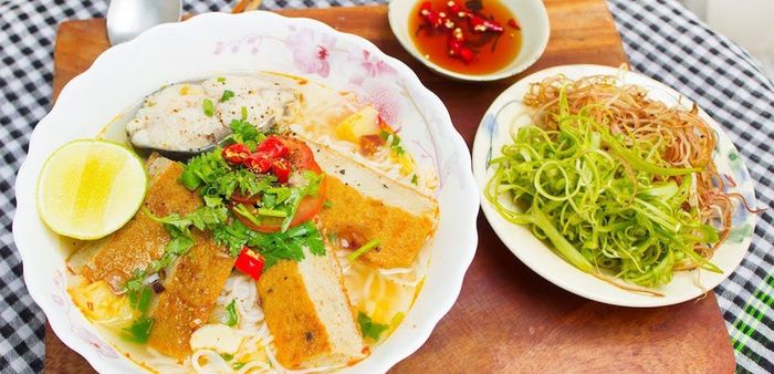 Quy Nhon Fish Noodles represent a perfect fusion of tasty fish cake slices, rich broth made from fish, and the refreshing acidity of tomatoes, creating an exceptionally unique flavor.
