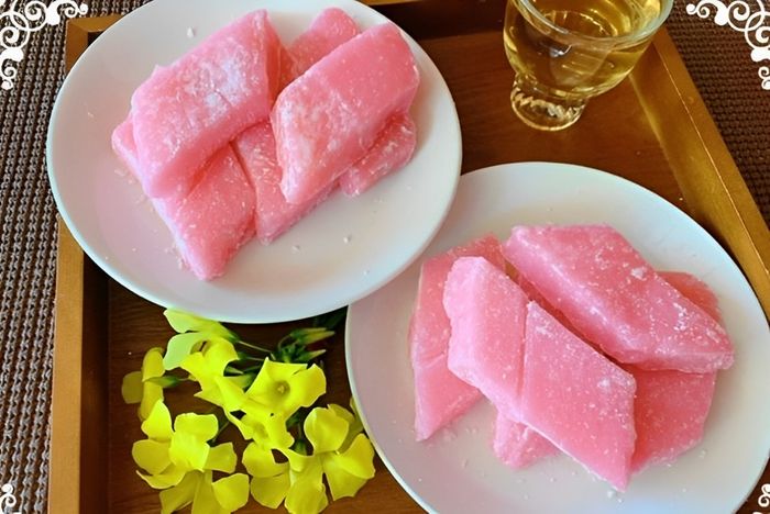 Tam Quan Pink Cake – a name that is extremely familiar to the locals here. This is a type of cake that is quite dry on the outside but soft and chewy on the inside, with a distinctive coconut flavor that captivates everyone.