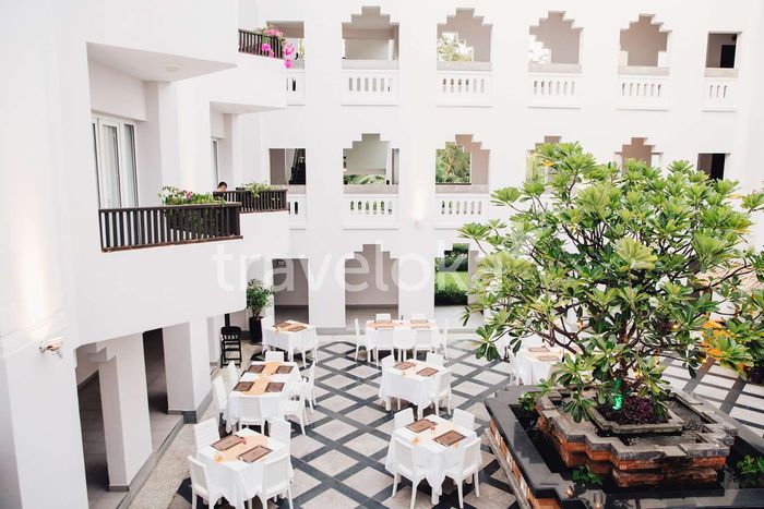 As mentioned, Muine Bay Resort draws inspiration from Cham Pa culture for its main design style. Therefore, the details here, from the arches to the red bricks, all utilize two main colors: white and earthy orange, creating a distinctive feature compared to other resorts.