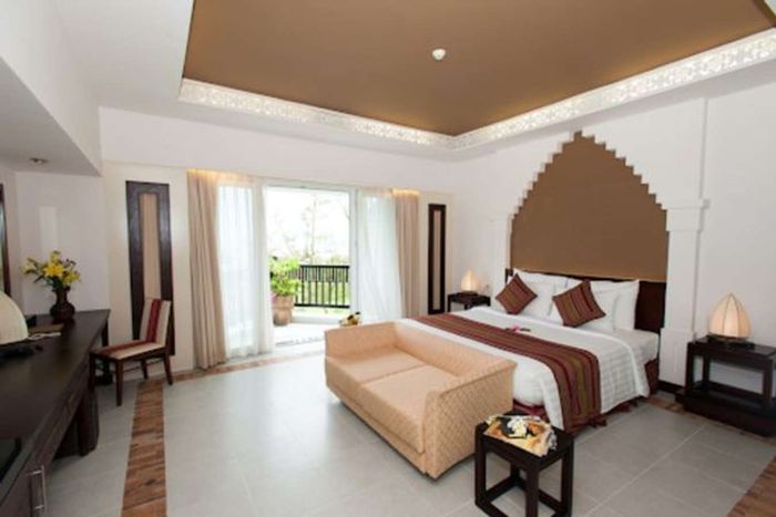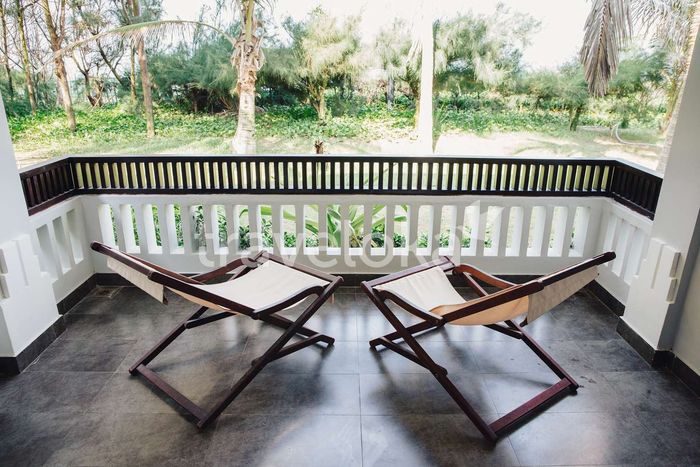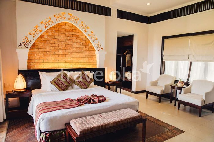 The room also overlooks the lush garden. @muinebayresort.comSuitable for couples or families who appreciate luxurious, sophisticated spaces. The Cham Pa motifs are intricately woven and harmoniously combined with modern elements, creating a comfortable, pleasant overall ambiance. The room also features a charming private balcony overlooking the cool green garden, promising absolute relaxation.