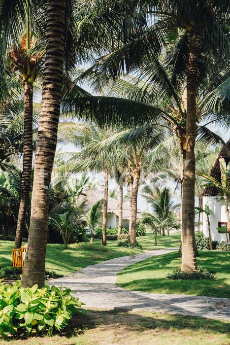 Coconut trees are planted throughout the resort to provide shade for guests strolling around the resort grounds.