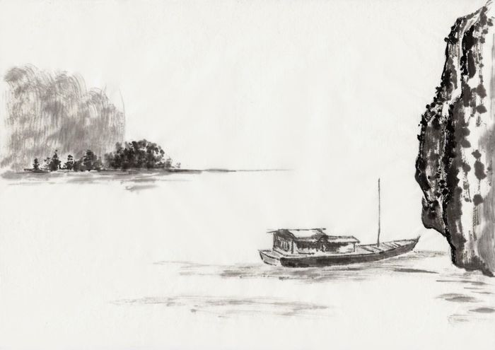 Beautiful Water-Ink Art in Classic Chinese Monochrome Style
