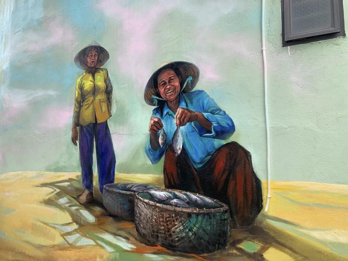 Adorned with approximately 30 colorful murals by various artists adorning the walls of local houses, Mân Thái Mural Street showcases the life of residents in a traditional seaside village since ancient times.