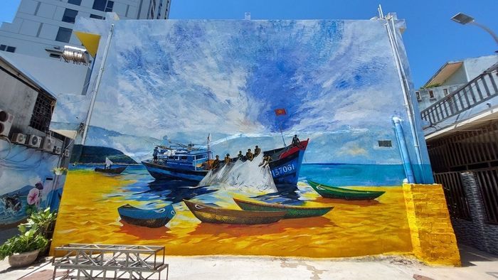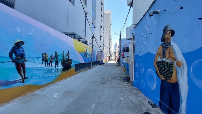 To diversify tourism products, foster community art, and preserve coastal culture, the mural street project is carried out in the alleys adjacent to Lăng Ông area, Mân Thái ward, spanning nearly 400 meters with an area of over 1,200 square meters.