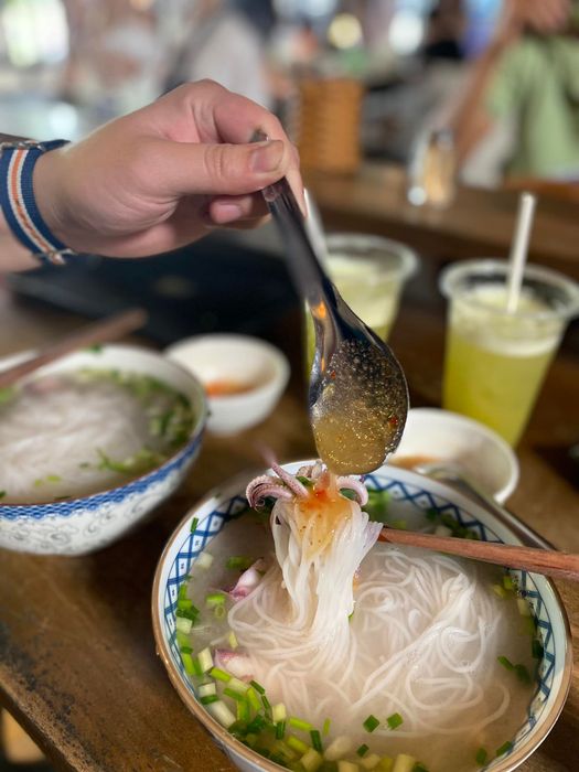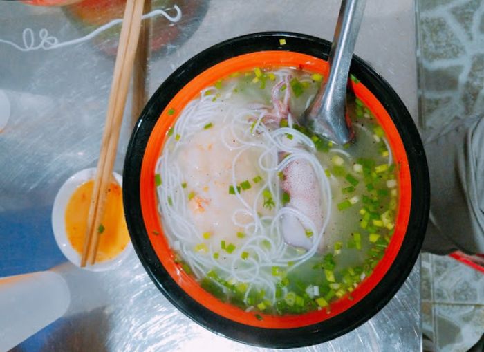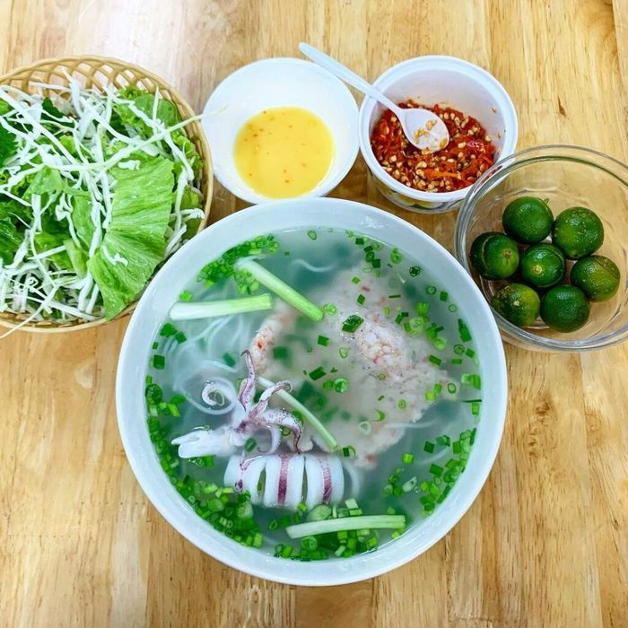 The noodle dish from this establishment features a rich and delicious broth, not overly seasoned with artificial flavoring. The predominant sweetness comes from the broth itself, allowing a prolonged sweet sensation. The ingredients are consistently fresh and delightful, including squid, shrimp, and fish cakes. The steaming hot broth, infused with the fragrant pepper of Phu Quoc, the aroma of spring onions, and the harmonious blend of seafood, will undoubtedly leave a lasting impression.