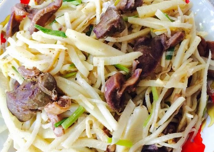 Beef tripe, also known as beef intestines, has a slightly bitter and strong odor. Those who are not accustomed to it may find it difficult to swallow. However, once you get used to it, you'll find it both crispy and chewy, the more you chew, the better it tastes, making it irresistible. Grilled bamboo shoots with beef tripe eaten with hot steamed rice is truly a wonderful dish!