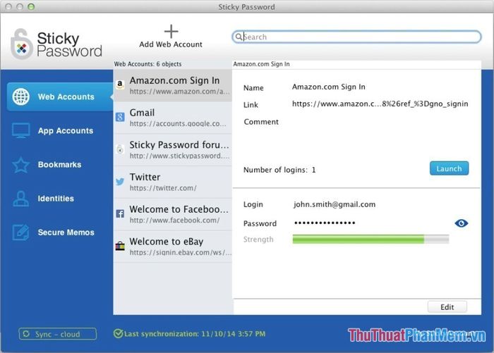 Sticky Password also possesses features similar to two free password management software, LastPass and Dashlane, as it supports multiple platforms, creates strong passwords, and automatically fills forms. However, Sticky Password has an additional noteworthy feature: it supports user authentication using fingerprints instead of passwords. Sticky Password is an excellent software for synchronizing and managing accounts and passwords. If you frequently forget passwords, use this software, as it enables you to log in to websites without typing passwords again—automatically logging in with just one click.