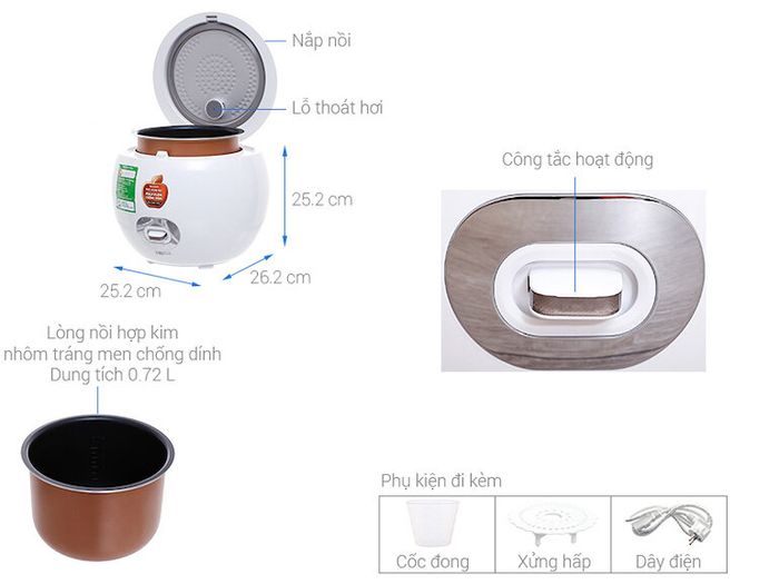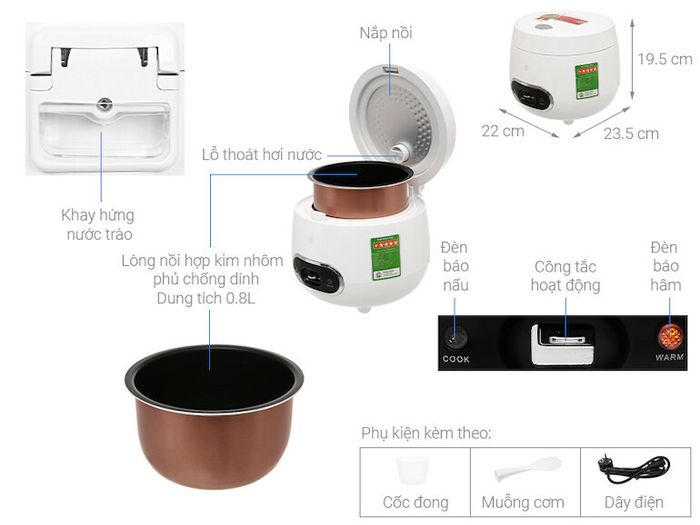 Mini electric rice cookers are compact versions of traditional electric rice cookers. While conventional rice cookers are typically used for families with 3 or more members, mini electric rice cookers are suitable for households with 1-2 people or for singles, students.