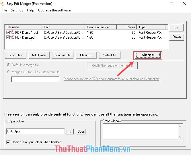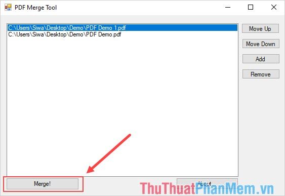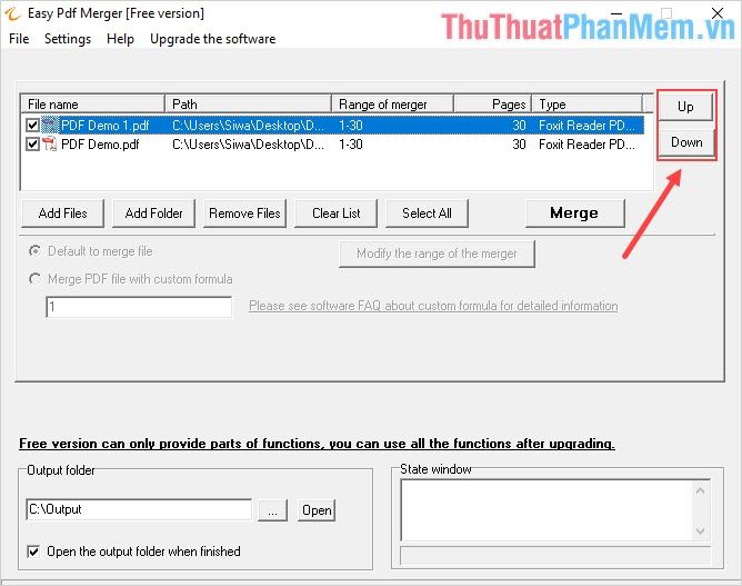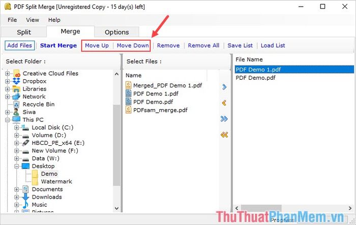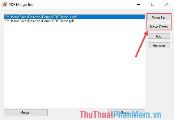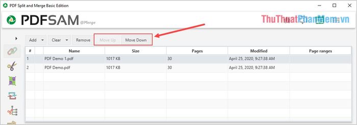 Step 3: Next, you can select Move Up/Move Down to change the position of the PDF files when merging.
