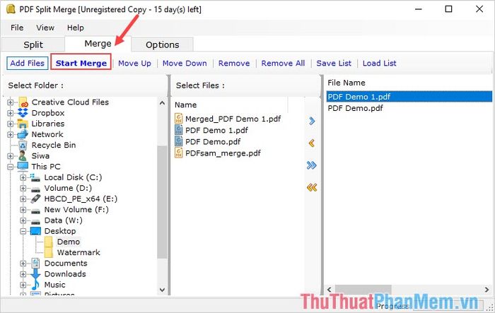 Step 4: Once the sorting is complete, select Start Merge to combine the PDF files.