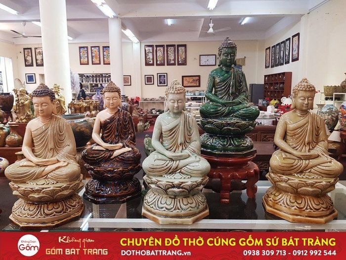 Bat Trang Ceramics offers a wide range of traditional Vietnamese handicrafts. Our products include household ceramics, decorative ceramics, and ceremonial ceramics. We provide professional and authentic ceremonial ceramics. Our products are original Bat Trang ceramics, diverse, unique, and high artistic value. They reflect Vietnamese culture and tradition. Some popular ceremonial ceramic products include incense holders, wine cups, ancestral tablets, incense burners, ceramic statues, and ceremonial trays. We also offer various wooden ancestral altars. Our display products include Buddha statues, mini altars, prosperity jars, candle holders, altar paintings, and decorative lamps. Bat Trang Ceramics also offers altar setup services for apartments and prayer rooms at special prices. Our Bat Trang ceremonial ceramics are artistically beautiful and suitable for various prayer spaces.