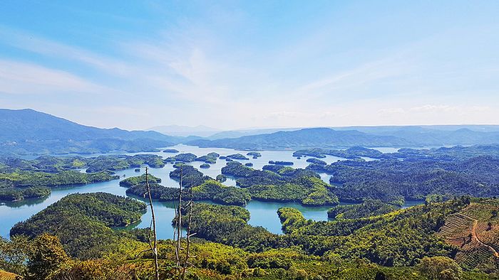 The lake is over 45 km away from the city center, often likened to the Halong Bay of the Central Highlands. When viewed from above, the scenery of the lake with more than 36 islands fluctuating in peculiar shapes is mesmerizing. Enjoying outdoor activities amidst the lake and observing it from above are two experiences highly favored by many tourists.
