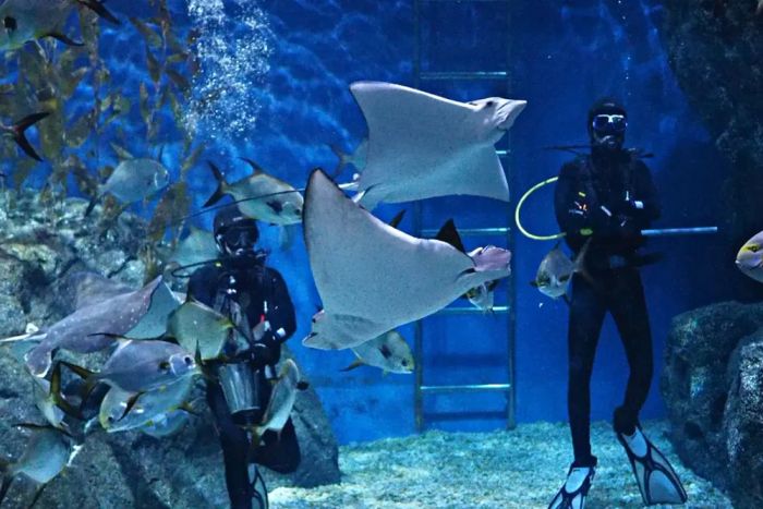 Additionally, the park offers other entertainment activities such as playing games, experiencing fishing, joining sea animal classes, or enjoying cuisine at restaurants within the premises. Especially, at SEA LIFE Bangkok Ocean World, you can schedule night tours to admire the unique scenery as marine fish embrace the light from lamps and light effects.
