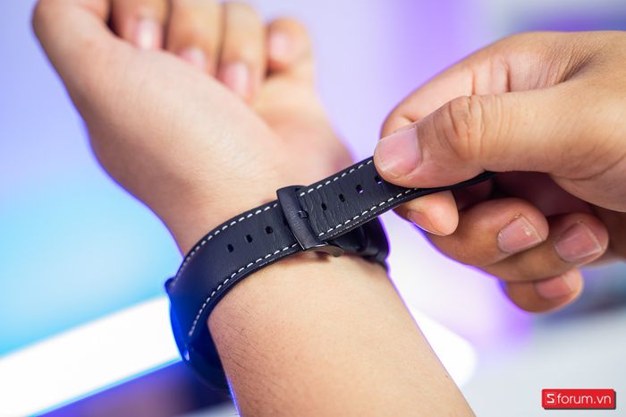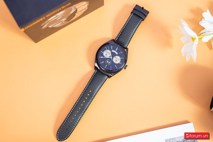 The watch strap is crafted from premium leather, featuring neat stitching and a comfortable feel.