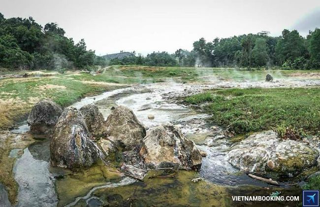 On the journey back to the homeland of Lệ Thủy, travelers should also take the time to experience moments of rest and relaxation at the Bang Spring tourist destination in Quang Binh. Located about 60 km from Dong Hoi city, Bang Spring proudly boasts being the only mineral water source in Vietnam with a boiling temperature of up to 105 degrees Celsius.
