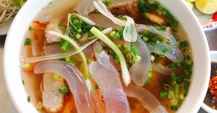 Jellyfish noodles may sound... itchy? Let me tell you, they're not itchy at all but incredibly addictive. The chewy texture of jellyfish combined with noodles, fish cakes, and tuna in the sweet and sour broth. Add some sour mango, chili sauce, and coriander, and you have an extremely satisfying dish. The price for a bowl of quality jellyfish noodles in Quy Nhon is only from 20,000 VND to 30,000 VND. Cheap, right?