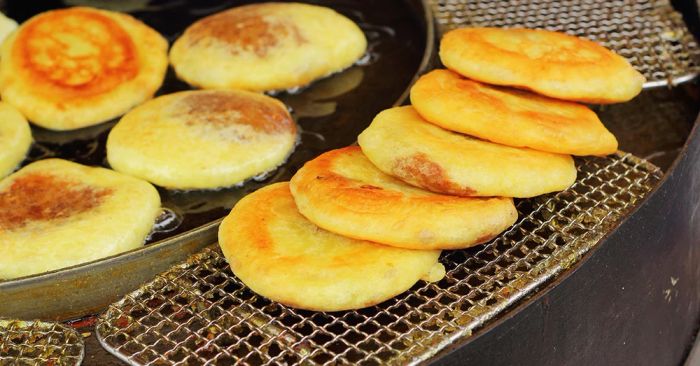 Although just a street food, hoddeok is greatly loved by Koreans and tourists alike every autumn. This type of cake is made from flour with a filling made from cinnamon powder, various seeds like pumpkin seeds, walnuts, peanuts. The outer crust of the cake is crispy, sweet, and not too greasy. The feeling of biting into a hot, crispy, fragrant cake in the chilly autumn, watching people pass by on the streets and traditional markets will surely make your Korean travel experience extremely enjoyable.