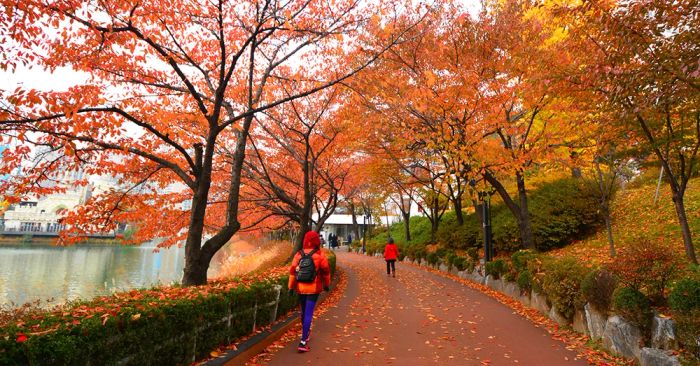 Nestled in the heart of Seoul, Yeouido Park is a must-visit destination when traveling to South Korea in autumn. With its romantic scenery and diverse structures, you can both enjoy the views and learn more about Korean culture and people right in the capital without having to venture far from the city.