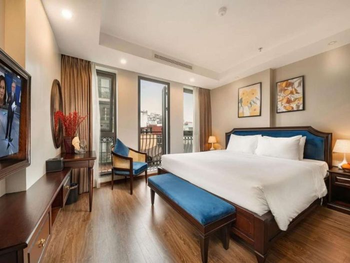 The accommodation options here include: Deluxe Double Or Twin, Deluxe Double Or Twin With Balcony, Luxury Double Or Twin With Balcony, and Suite With Balcony; all already include a complimentary breakfast. From the hotel, guests can easily move to many famous dining and entertainment spots of the capital, the nearest being the renowned Ta Hien beer street.