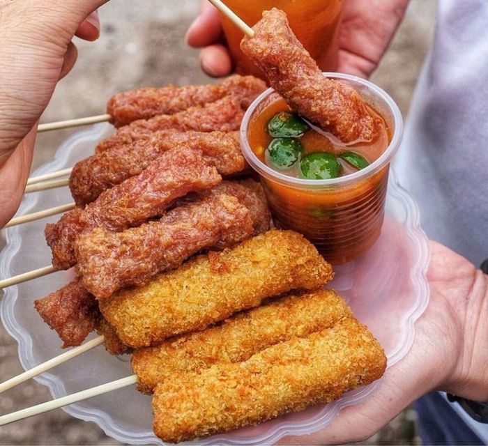 Fried nem chua has a crispy outer layer and a slightly tangy, soft inside, dipped in spicy chili sauce, making it unbelievably delicious. This dish is often enjoyed with cool cucumber or pickled fruits to balance the flavors.