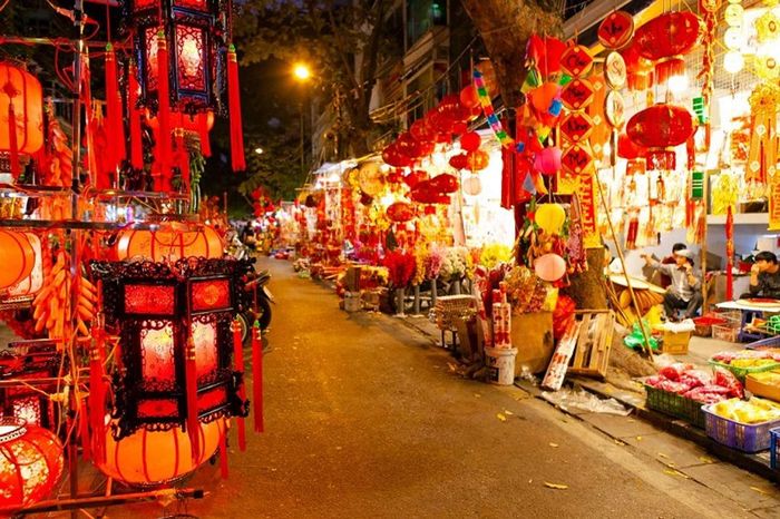 During festive occasions, this traditional street is adorned with vibrant red hues, featuring lanterns, decorative lights, and blossoming peach blossoms. It serves as an ideal check-in location for many Hanoi residents during significant celebrations in Vietnam.