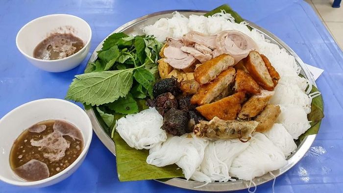 Shrimp paste vermicelli with fried tofu is a popular and delicious dish in the heart of Hanoi. Initially, it consists of crispy fried tofu, fresh vermicelli, shrimp paste, and raw vegetables, simple yet unforgettable with each flavorful bite.