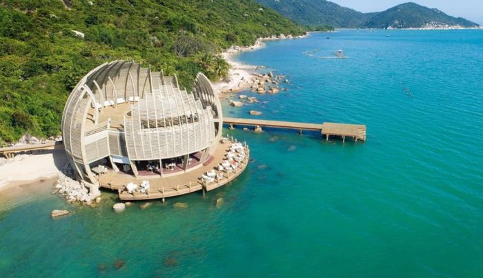 Experience exciting complimentary activities such as Thai Chi, kayaking, paddleboarding, coral diving, and mountain exploration at this resort. It boasts an outdoor cinema, ranking among the top 10 most romantic outdoor cinemas globally. Ideal for family vacations, couples, honeymoons, and wedding photoshoots, the prices range from 11 to 86 million for one night.
