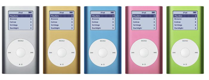 The Mini line debuted in 2004, characterized by its diminutive size and a selection of 5 colors, with a maximum capacity of 4GB.In the second generation: In 2005, the Gen 2 of iPod Mini expanded its memory to 6GB.iPod Shuffle