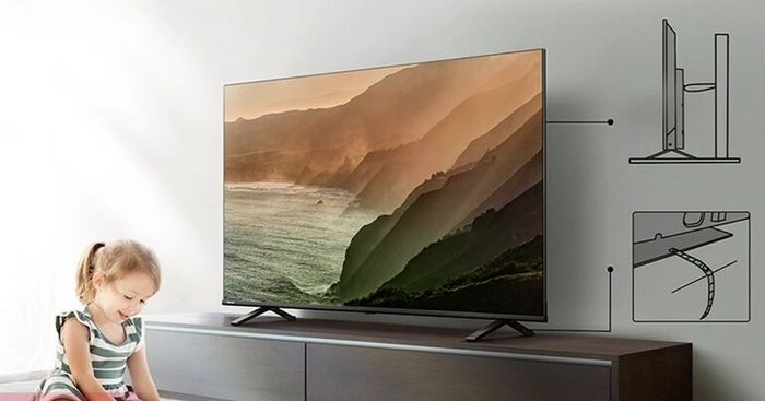 Toshiba's 4K TV features a sturdy metal stand with anti-tip design, enhancing stability. The detachable base allows space-saving and wall-mounting options, transforming the TV into an artistic focal point, adding elegance to the home decor.