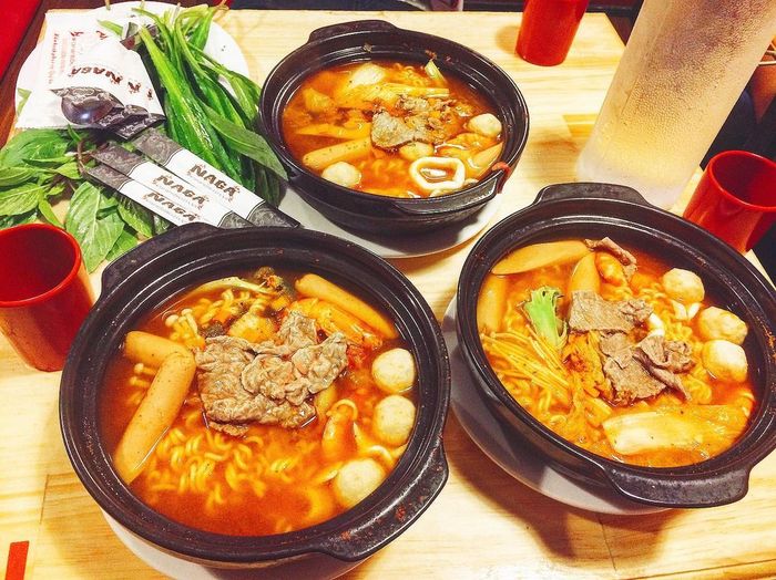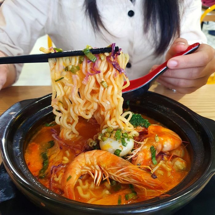 Naga Spicy Noodle has a distinctive flavor that cannot be mistaken for anywhere else. Using Koreno noodles, the noodles are round, chewy, and delicious. The broth is prepared with a unique recipe and offers 7 levels of spiciness. If you can't handle spice, you can opt for level 0. The toppings, including seafood, beef, chicken, mushrooms, are all fresh and meticulously prepared.