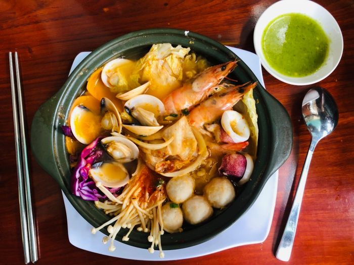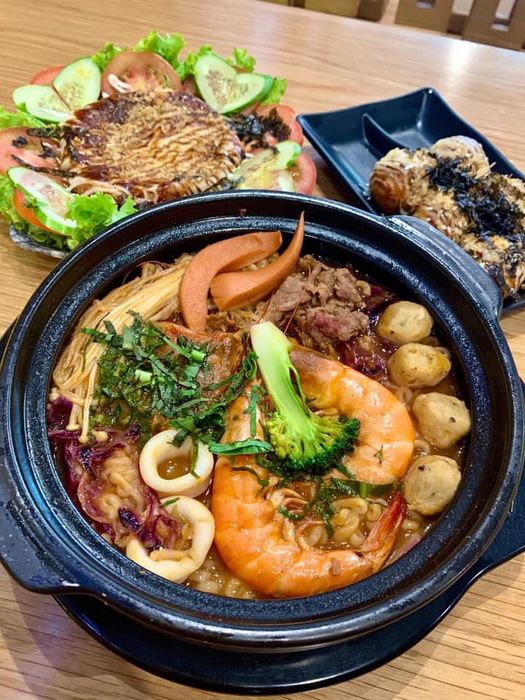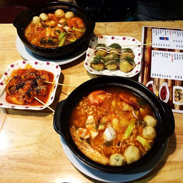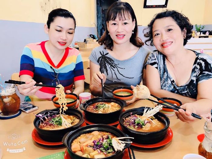 Apart from the 4 signature spicy noodle types: shrimp, fish, seafood, and beef, the restaurant also serves Takoyaki and kimbab. The venue has a fairly simple and rustic space with low seating tables. The spacing between tables is arranged logically to create a comfortable and pleasant atmosphere. Despite the delicious food, the restaurant has some drawbacks such as a limited menu and the absence of accompanying herbs.