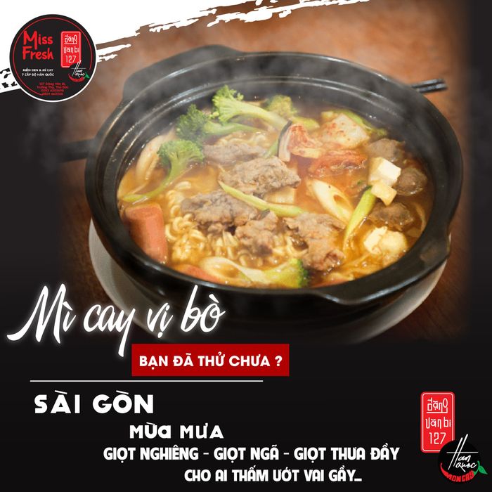 In Thu Duc, Seoul is a renowned spicy noodle brand known for its quality and reputation. When you visit, you'll enjoy the perfect taste of spicy noodles with a variety of choices. Among them, the kimchi spicy noodles with shrimp are the 'best seller' that you shouldn't miss. The noodles are delicious, the broth is tangy and spicy, perfectly balanced. Once you try it, you'll be hooked.