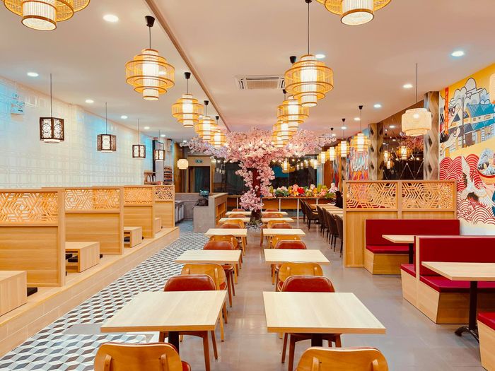 Yagami Spicy Noodles is a popular hangout spot for young people in Thu Duc. The venue boasts a spacious, modern, and luxurious design with a strong Korean cultural influence. There are many trendy photo spots for you to capture memorable moments. The space is divided into various areas, allowing you to choose a suitable seating location. The floor-seating area also has partitions to ensure privacy.