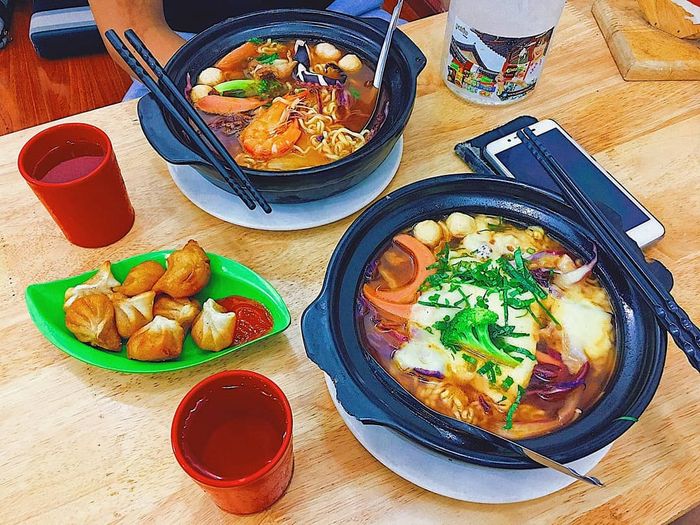 Koreno stands out among Thủ Đức's spicy noodle spots with its three-floor Japanese-inspired ambiance. The diverse menu offers a wide range of choices, featuring two main types of noodles: Thai hot pot noodles and kimchi noodles. Additionally, there is a variety of toppings available, such as lobster, American beef, cartilage ribs, chicken thighs, octopus, and more.